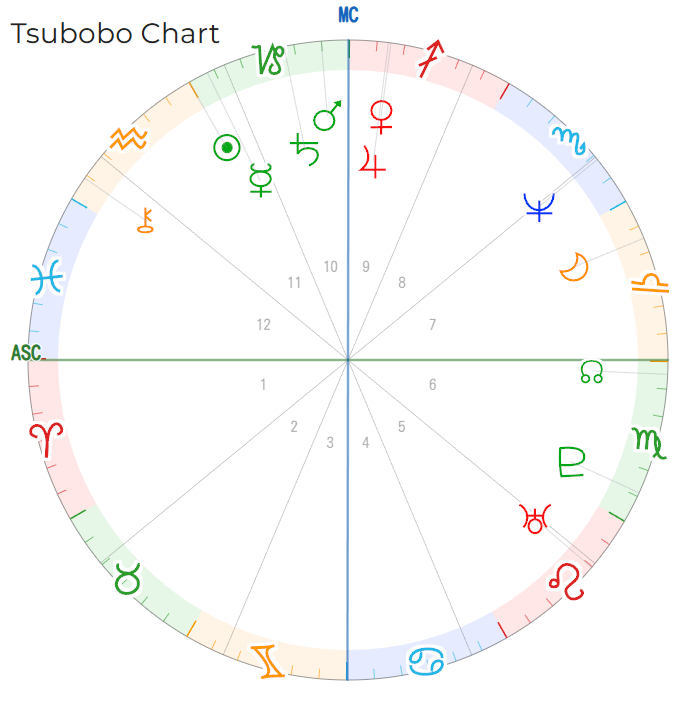 海王星には無償の愛や耽溺の意味があり、土星とアスペクトを取ると被差別や虐待の意味もありますが、ファティマたちの自らの死も厭わないその献身と奉仕で主の絶対的信頼を得る様子は、時に魔性と評され嫌悪や戒めの対象になったり、粗暴な主から八つ当たりで暴力を振るわれたり主を喪ったファティマは売春宿に売られたり一般人から蹂躙されたりします。