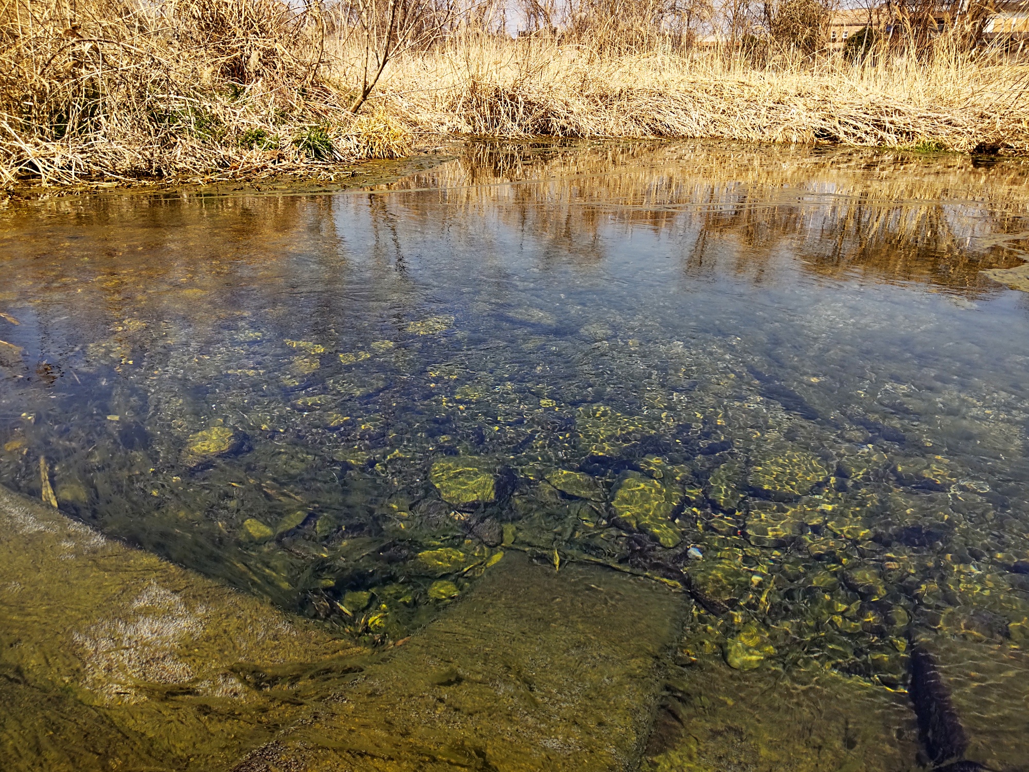 2025.03.23 浅川の湧水4 元本郷町湧水【東京都八王子市】 2025年3月30日 写真 浅川 元本郷町湧水 全景 3/2の完全に干上がった状態から、数日雨が降り続いたくらいでどこまで水量が回復するのか気がかりでしたが、ここまで復活しました。 3/2の様子 湧出量の多い地点 まだ見るからに枯れ草などたくさん残ってるので、水中の風景には期待してなかったのですが、一瞬息をのむ透明度の高さでした。 水草が復活した後の水中が楽しみです!! 増えてきた周囲の野草 少し下流の流れ