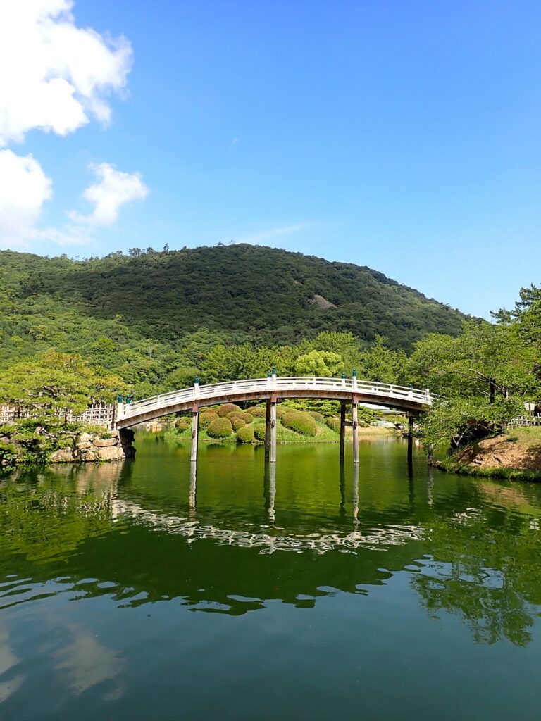 300年以上前から庭造りがはじまり、のちに高松藩主の別邸として100年もの歳月をかけて完成した、国の特別名勝にも指定されている回遊式庭園です。
