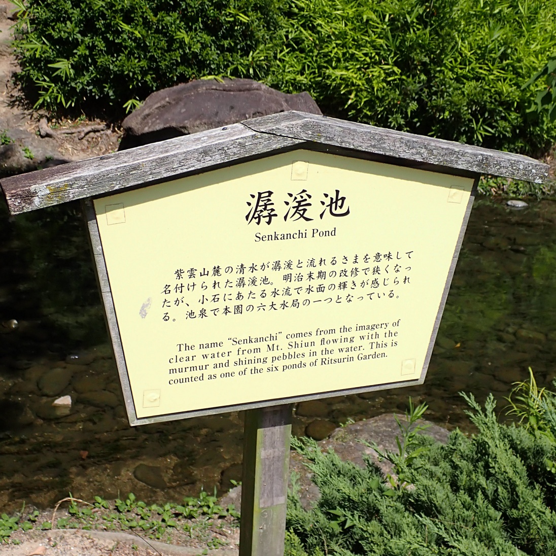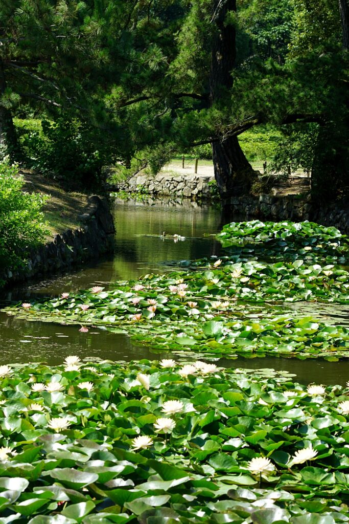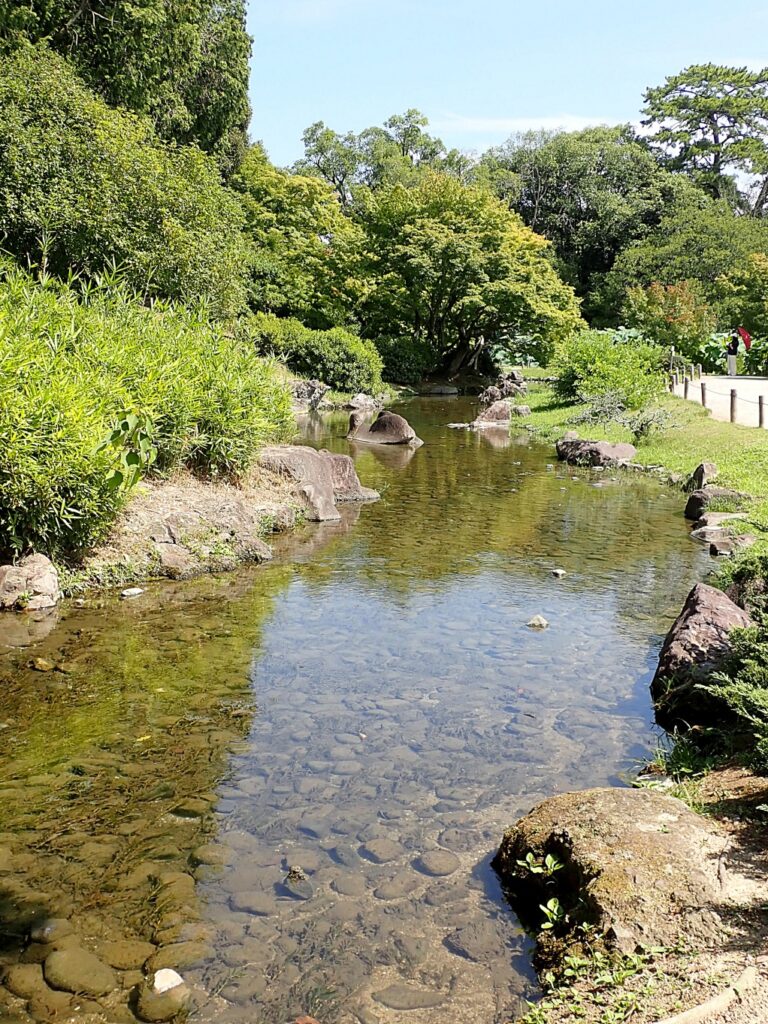 潺湲池(せんかんち)。栗林公園の主要な池を「六大水局(六大水系)」と呼びますが、そのうちの一つです。