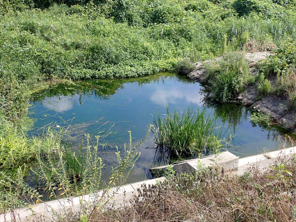 ワンドから本流に流れ出す水路もすっかり草に覆われています。