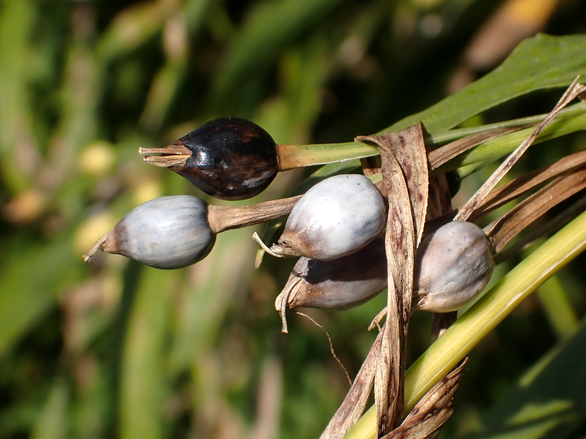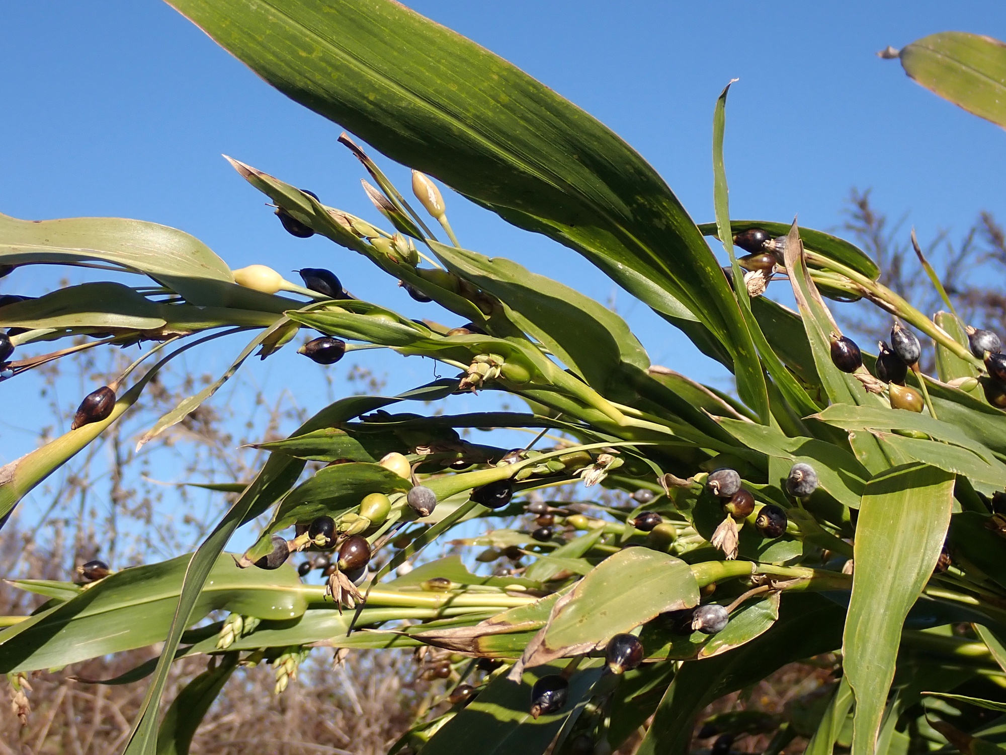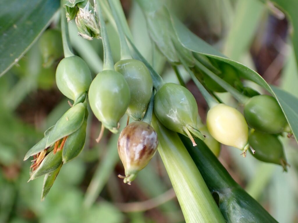 2021,2023 ジュズダマの花と実 2025年12月3日 写真 23年11月 近所の河原や水路脇で見かける数珠玉です。 雌しべの先端がハートの形に(以下21年9月) 稲のような花から実ができていく様子です(ジュズダマはイネ科)。 トンボのつがい(21年10月) 21年8月 21年8月 21年11月 以下21年11月 23年11月 真冬でもまだ熟してない緑の実が見られます。スモークブルーや艶やかな黒色の実が、冬をまたいだ長い期間楽しめます。 21年11月 (Instagramの過去投稿より)