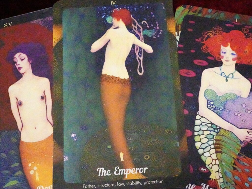 ほとんどのカードが女性の人魚で構成されている中、皇帝は男性と思しき人魚が採用されています。