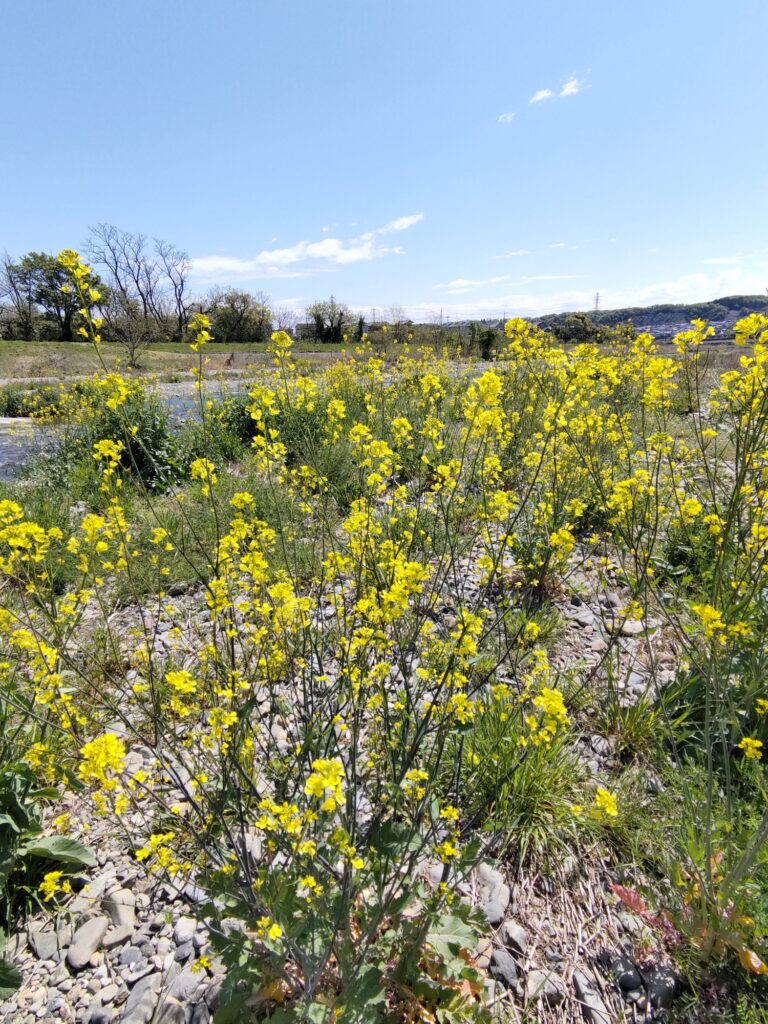 この日は野鳥たちが川の上を飛び回っていて、岸辺の菜の花との撮影ができました。