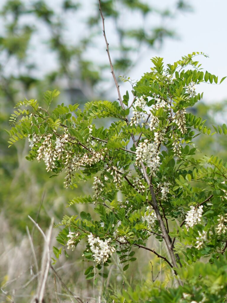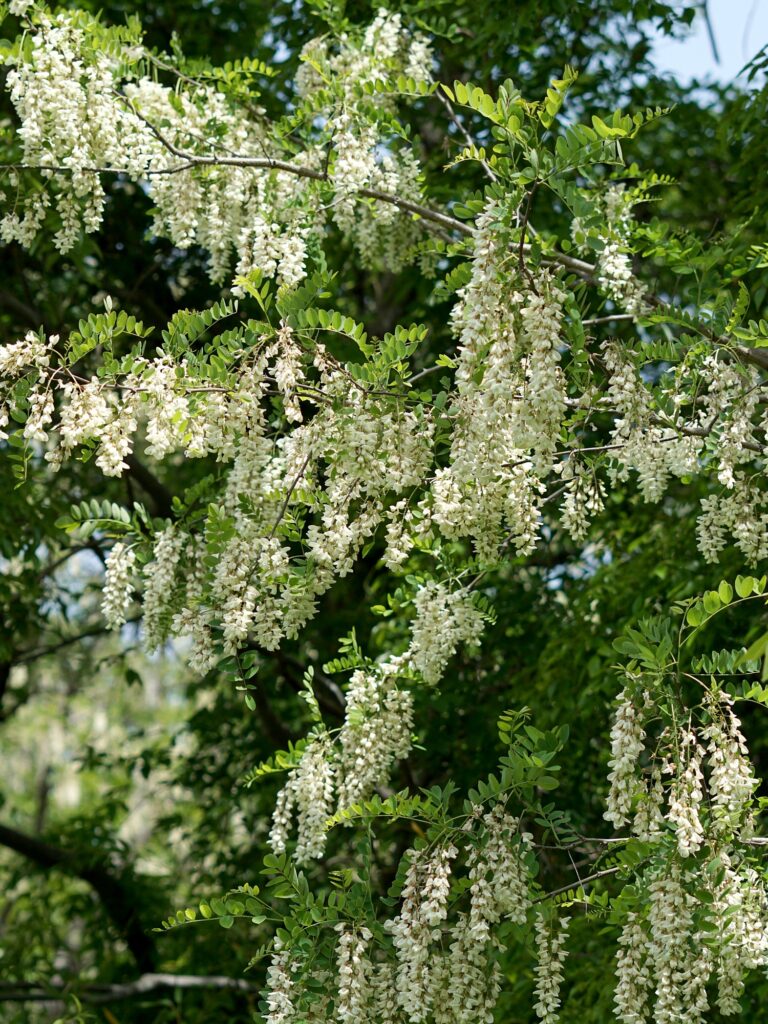 満開のニセアカシアから、甘い香りが風に乗って遠くまで漂ってきます。